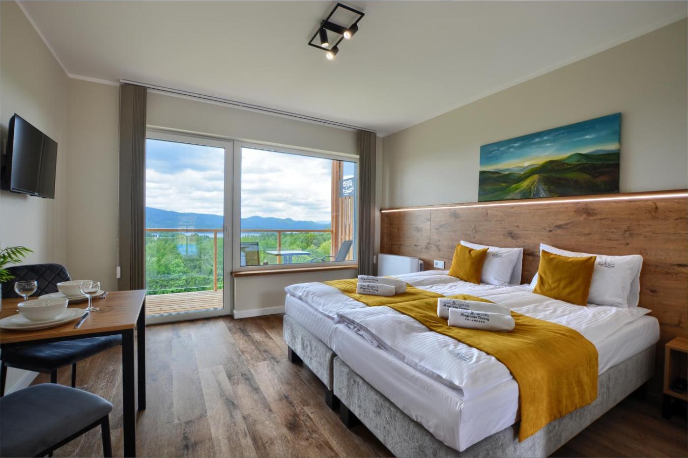 Pokój Dwuosobowy przystosowany dla osób niepełnosprawnych. The well-equipped kitchenette features a stovetop, a refrigerator, kitchenware and an electric kettle. The spacious double room provides air conditioning, a dining area, a balcony with lake views as well as a private bathroom featuring a shower. The unit offers 2 beds. Pokój Dwuosobowy - 2 osobowy. Powierzchnia pokoju ok.: 30 mkw. ;