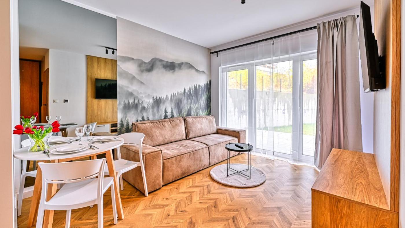 Apartament z 1 sypialnią. This apartment is comprised of 1 living room, 1 separate bedroom and 1 bathroom with a shower and a hairdryer. In the well-equipped kitchenette, guests will find a stovetop, a refrigerator, a dishwasher and kitchenware. Featuring a terrace, this apartment also offers a coffee machine, a seating area and a flat-screen TV. The unit offers 2 beds. Apartament - 4 osobowy. Powierzchnia pokoju ok.: 37 mkw.