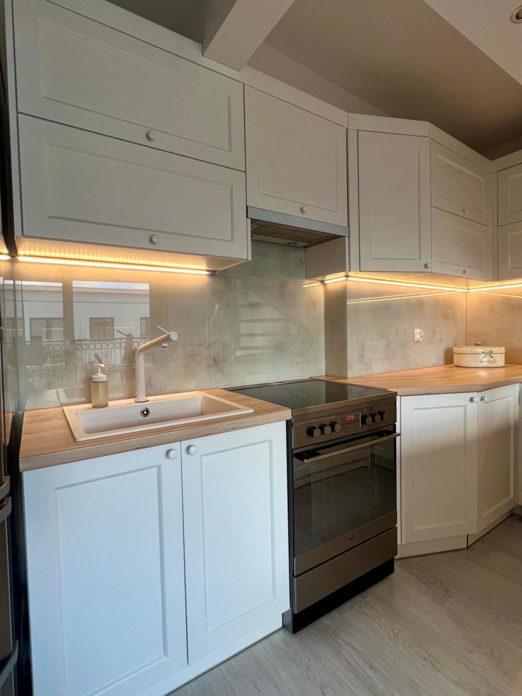 Oferta apartamentu obejmuje sypialnię (1), salon, kuchnię z pełnym wyposażeniem, w tym lodówką i ekspresem do kawy, a także łazienkę (1) z wanną oraz suszarką do włosów. W apartamencie zapewniono ręczniki i pościel.